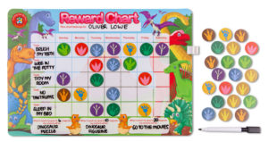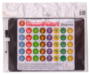 Personalised tasks and goals can be added using the included white board marker along with 40 themed reward magnets in 8 different designs.